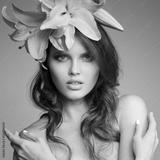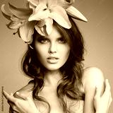 Beautiful Woman With Flowers Wreath In Her Hair. Pink Lily.
