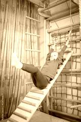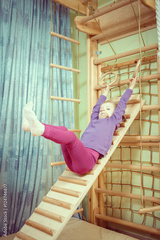 5 years old child playing on sports equipment