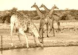 Southern African Giraffe visit a watering hole - Etosha National Park, Namibia