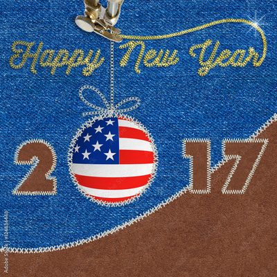 Happy New Year 2017 american flag on Jeans Background. Sewing fabric applique