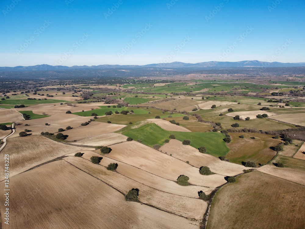 landscape, view, nature, fields, mountains, sunny, spring, green