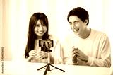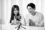 笑顔で動画撮影をする日本人男女