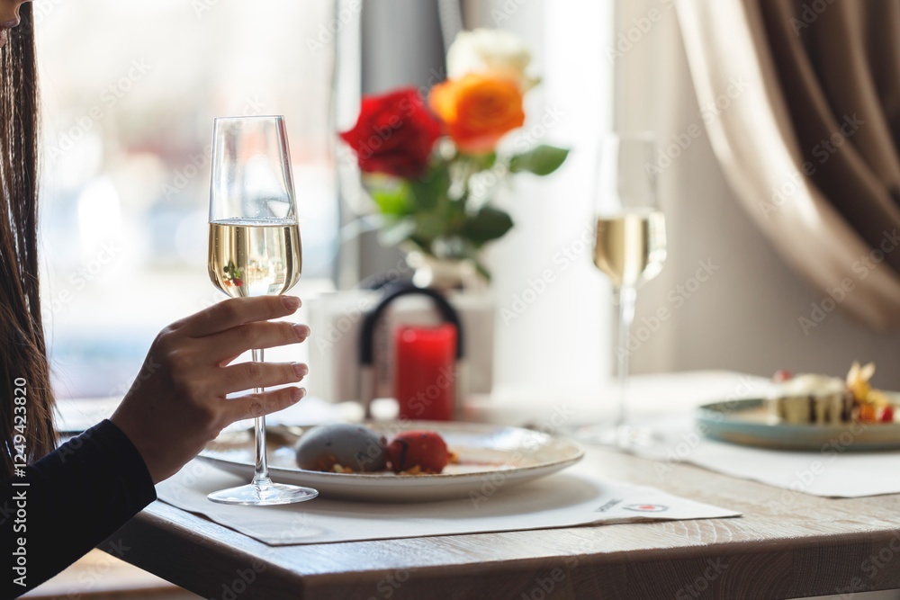 Couples savor exquisite sushi delicacies made from the freshest fish while toasting with sparkling wine. Roses add a touch of romance to the intimate dining experience