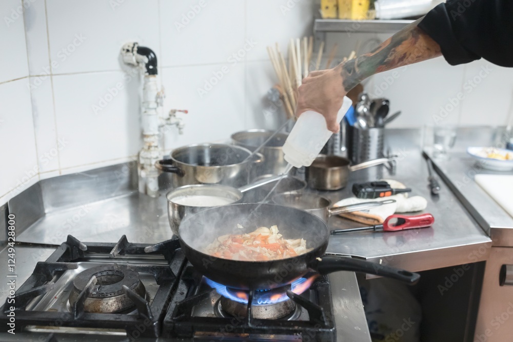 In a vibrant kitchen, a skilled sushi chef artfully combines fresh ingredients while cooking for Valentine's Day. The atmosphere buzzes with anticipation for delightful take-away sushi