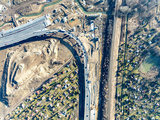 Krakow, Poland. Mistrzejowice interchange under construction Temporary ramp joining S52 highway and S7 express road from Warszawa, both opened in December 2024. Aerial view from above. February 2025