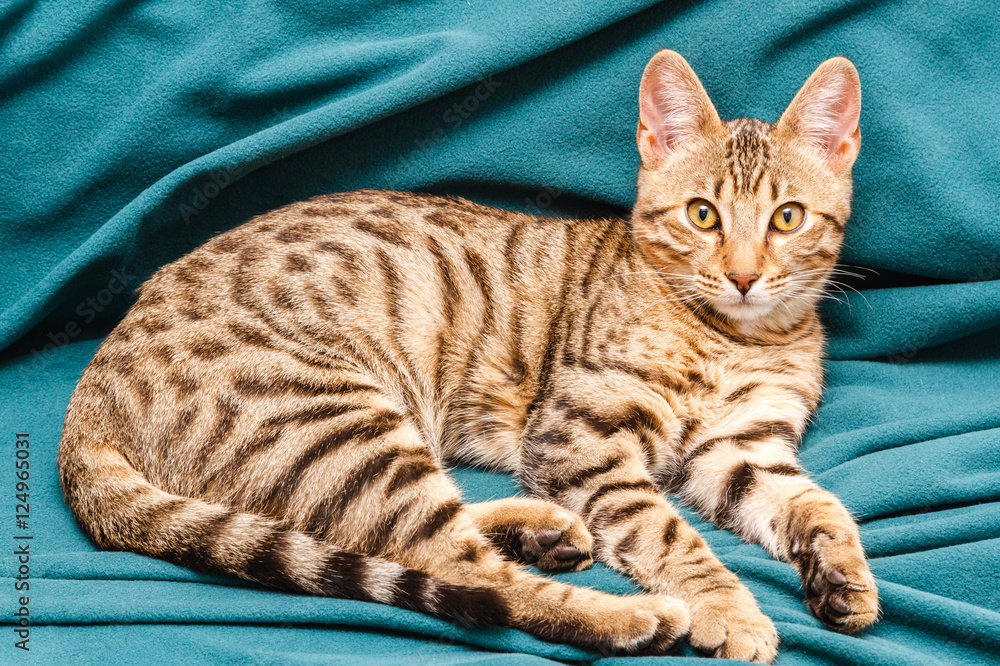 Prionailurus bengalensis. Joven Gato Bengalí, tumbado.
