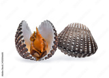 fresh cockles seafood on white background
