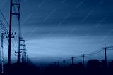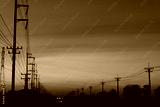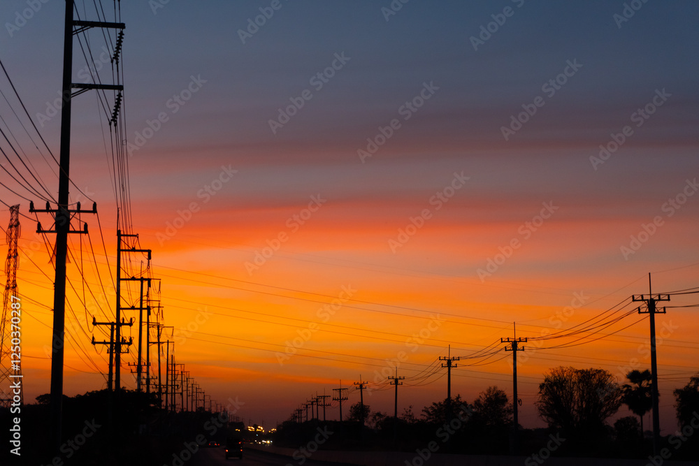 Sunset over power lines open road landscape photography vibrant sky perspective nature's beauty in motion