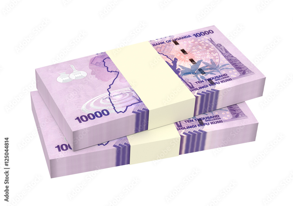 Ugandan shillings bills isolated on white background. 3D illustration.