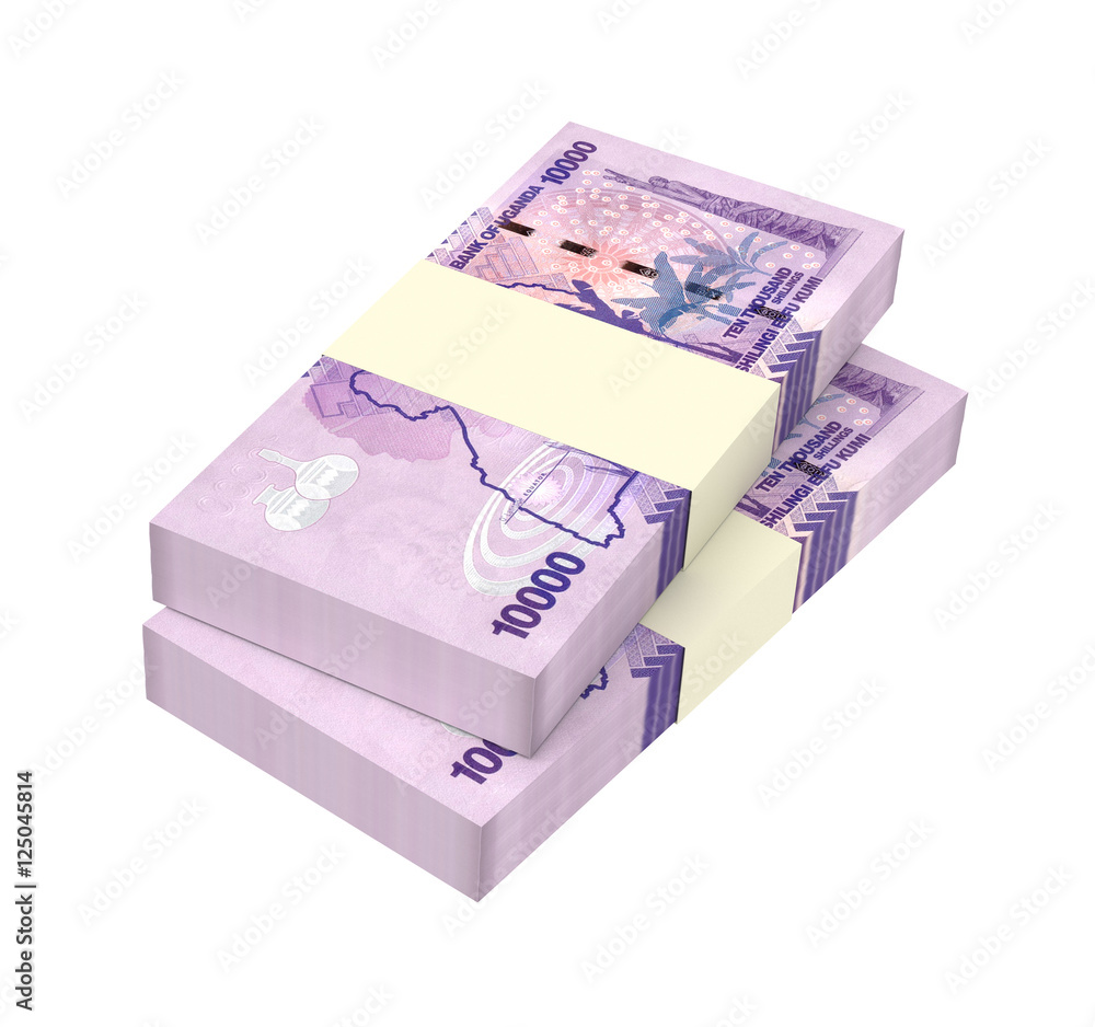 Ugandan shillings bills isolated on white background. 3D illustration.