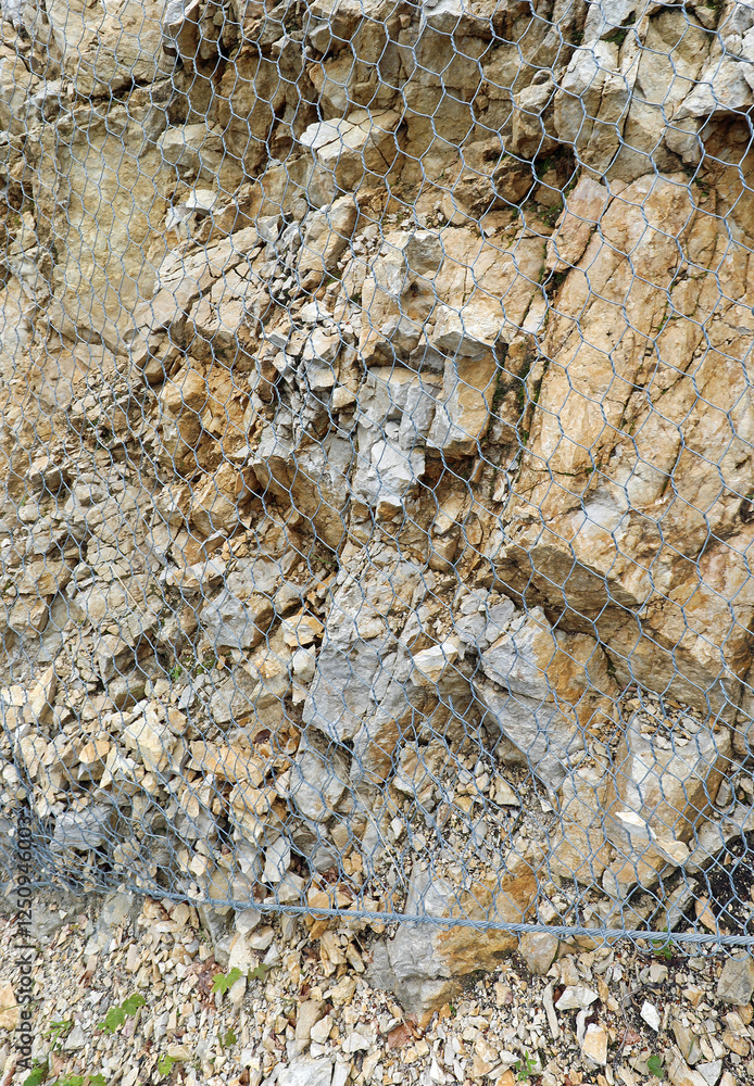 metal mesh for protection against rock landslides in the mountain slope