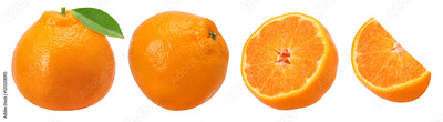 Orange fruit (Sumo Orange) with leaves, half and slices isolated, transparent PNG, collection, PNG format, cut out