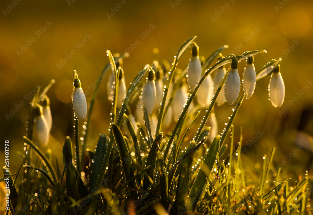 Wiosenne kwiaty, Przebiśniegi w kroplach wody.