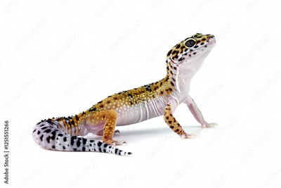 close-up of a leopard gecko lizard isolated on white, eublepharis macularius