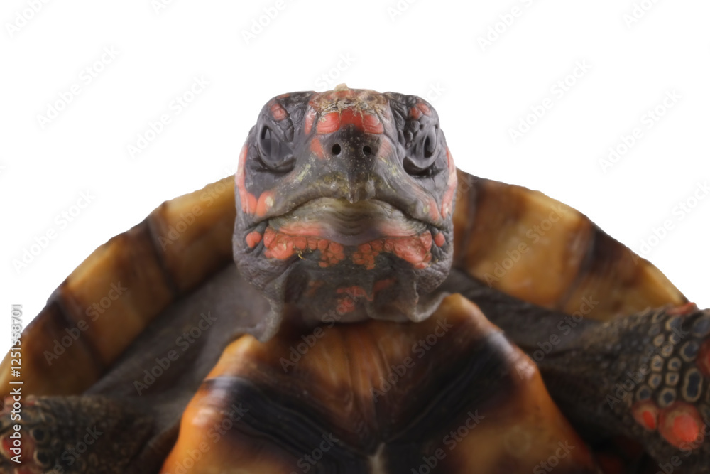 Close-up of a head cherry head red-footed tortoises, Chelonoidis carbonarius