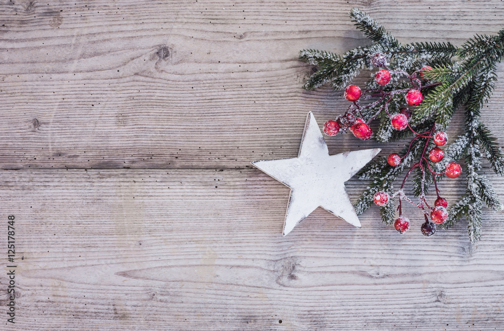 Weihnachtsstern auf Holz Hintergrund als Grußkarte oder Postkarte zu Weihnachten