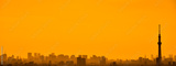 夕日に映える東京スカイツリーと東京の高層ビルのシルエット