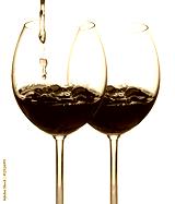 Pouring wine isolated on white background