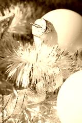 White xmas ornaments close up. Merry christmas card. Winter holidays. Happy New Year.