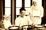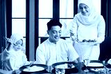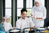 Happy Muslim Family Enjoying a Traditional Meal Together During Eid