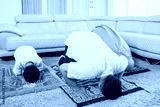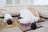 Muslim Family Performing Sujud (Prostration) During Prayer at Home