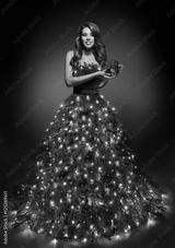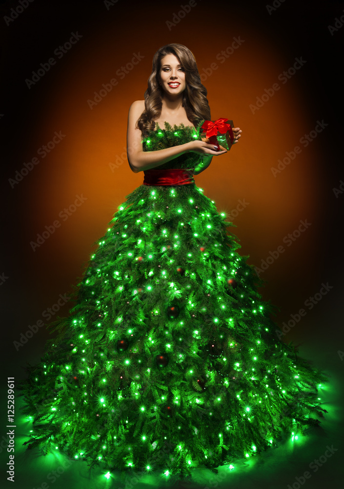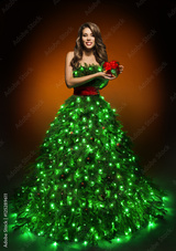 Christmas Tree Woman Dress, Fashion Lighting Gown, Girl Xmas Present