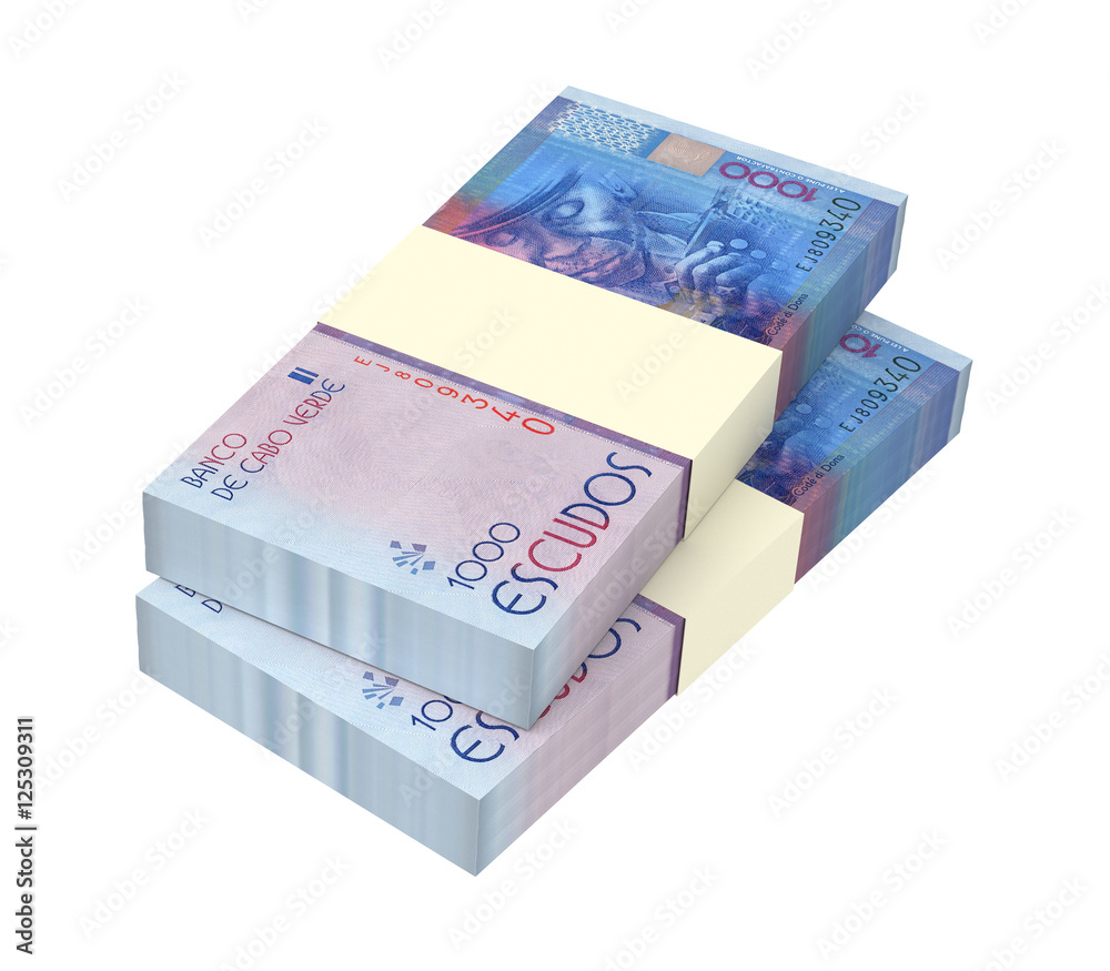 Cape Verdean escudos bills isolated on white background. 3D illustration.