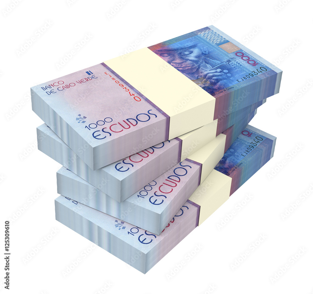 Cape Verdean escudos bills isolated on white background. 3D illustration.