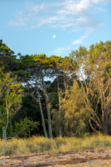 Late afternoon light on the beach and trees of the Emerald Fringe. Main Beach, Coochiemudlo Island, Queensland, Australia