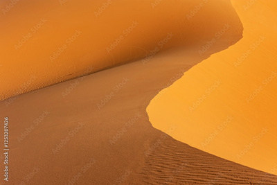 Landscape background. Curves of sand dunes. Western Sahara closeup. Morocco. Horizontally.