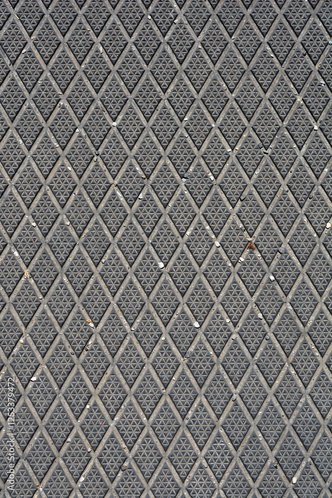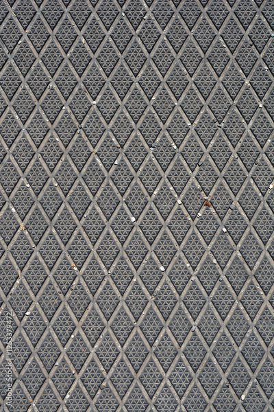 A close-up shot of a textured rubber surface with a repeating diamond plate pattern