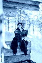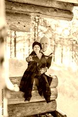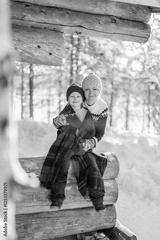 Mother and child bundled in winter clothing