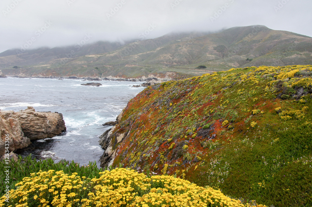 Foggy Coastline of the Pacific Ocean at Soberanes Point. Garrapata State Park, Big Sur, Central California, USA.