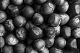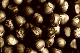 Huzelnut background. Hazelnuts in shell stacked in a heap shot from above closeup
