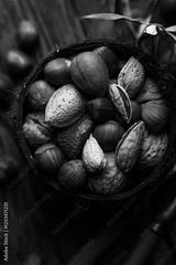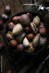 Close-up detail of a variety of mixed nuts in shells including almonds brazil nuts walnuts and hazelnuts