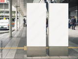 Mock up Blank Banners signage Train station Public building