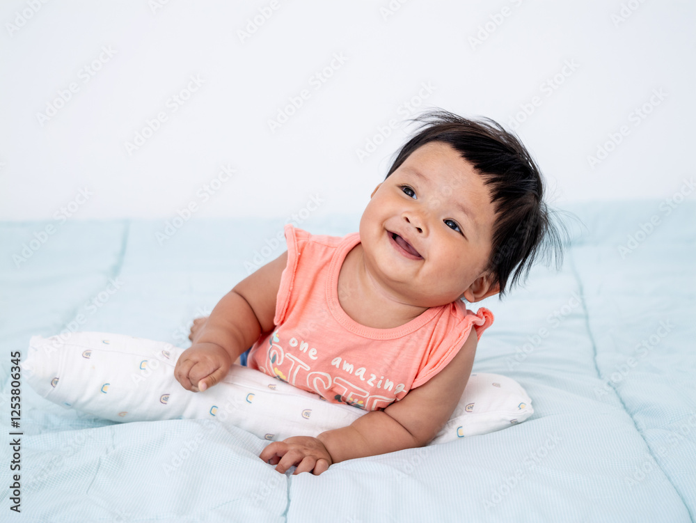 Joyful family moments baby girl smiling indoor setting candid baby cozy atmosphere