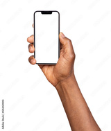 Man using smart phone with blank screen isolated on transparent or white background