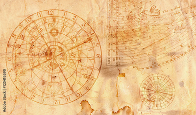 Astronomical clock in grunge style useful as a background - 16:9