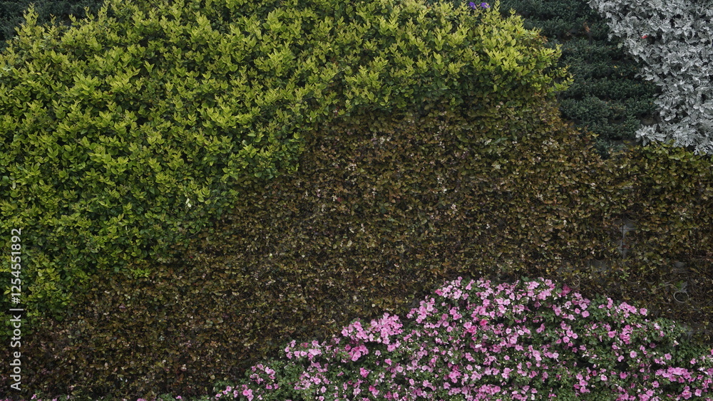 Vibrant Green Wall with Colorful Flower Bed for Garden Inspirati