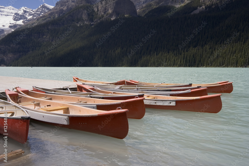 canoes in lake louise
