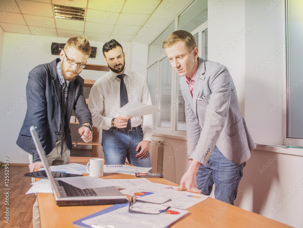 Startup Diversity Teamwork Brainstorming Meeting Concept.Business Team Coworker Global Sharing Economy Laptop Graph Screen.People Working Planning Start Up.Group Young Man Looking Report Office