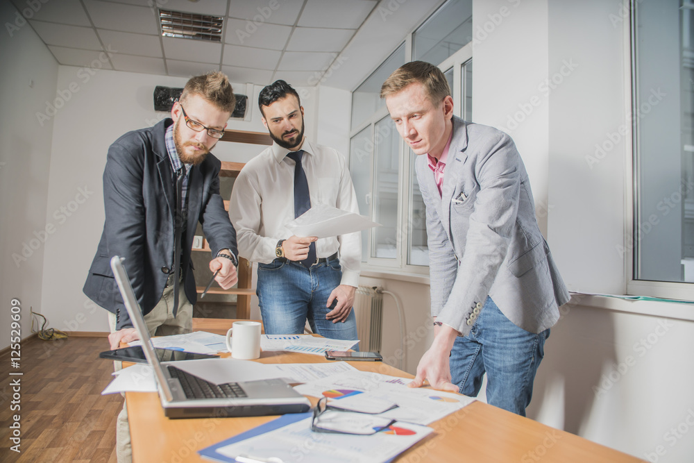 Startup Diversity Teamwork Brainstorming Meeting Concept.Business Team Coworker Global Sharing Economy Laptop Graph Screen.People Working Planning Start Up.Group Young Man Looking Report Office