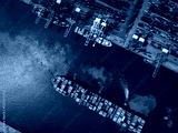 container ship and commercial port in deep sea loading and unloading cargo from container ship import and export by crane for distributing goods by trailers transportation. aerial top view