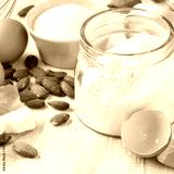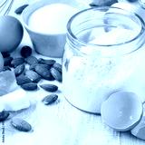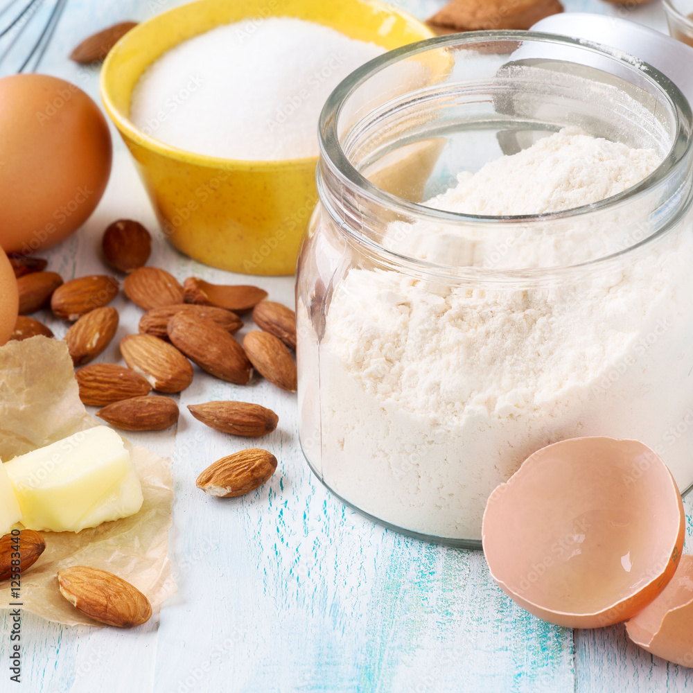 Baking concept. Fresh ingredients for almond cookies, Italian cantuccini biscuits or pastry preparation
