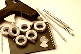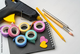 Crafting supplies and tools arranged on a workspace ready for creative projects