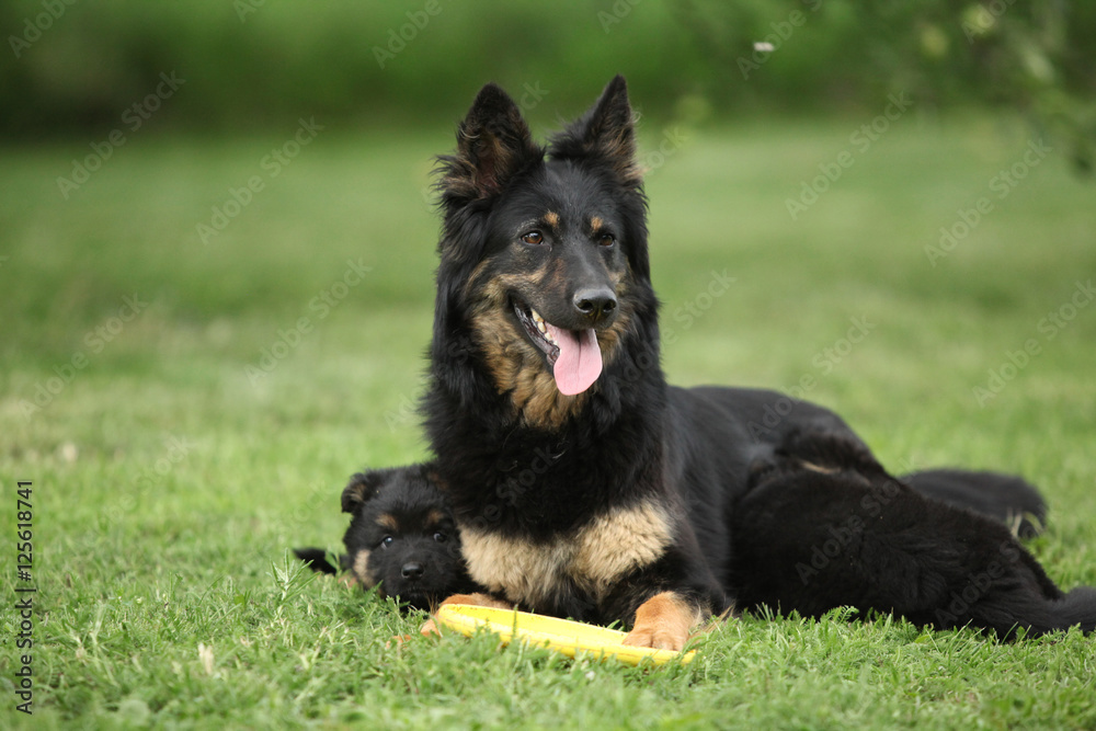 Beautiful bitch of Bohemian Shepherd with its puppies
