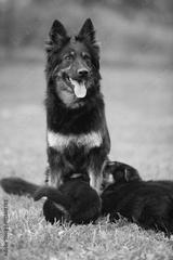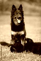 Beautiful bitch of Bohemian Shepherd feeding its puppies