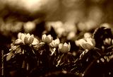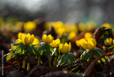 Wiosenne kwiaty . Kwitnące Ranniki w parku.