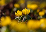 Wiosenne kwiaty . Kwitnące Ranniki w parku.